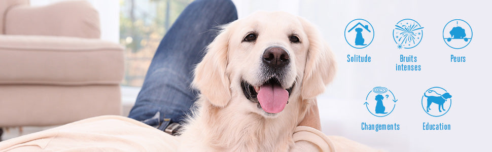 Dans la nature, les chiots et les chiens adultes vivent souvent en meute et communiquent par le biais de messages naturels libérés dans l'air appelés "phéromones". Ces messages apaisants sont émis par la chienne au moment de la mise bas et pendant la lactation pour rassurer ses chiots et au niveau des oreilles chez les chiens adultes.