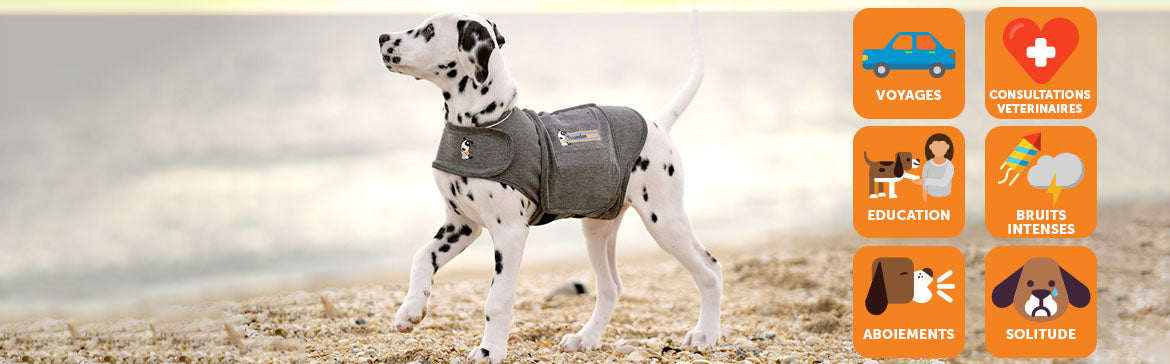 Il est scientifiquement prouvé que le gilet ThunderShirt aide les chiens à se détendre dans ces situations.