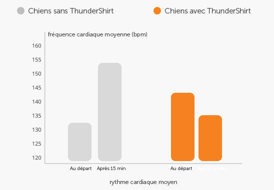 L'effet de la pression douce a été scientifiquement démontré sur des chiens souffrant d'anxiété*. Dans une étude étudiant les effets de ThunderShirt, les chiens portant le gilet étaient plus détendus que ceux qui n'en portaient pas. En particulier, leur fréquence cardiaque avait tendance à diminuer alors qu'elle augmentait chez le chiens sans gilet. De plus, ils avaient tendance à manifester moins de comportements liés au stress. Cela montre que l'utilisation d'un dispositif d'enveloppement compressif peut favoriser la relaxation des chiens confrontés à des situations difficiles.